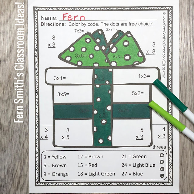 This Christmas Multiplication Color By Number resource for the ONE to TEN MULTIPLICATION FACTS is perfect for the countdown to Christmas in your classroom! Each page has only one skill, for example, Nine Times Tables is the cute as can be gingerbread girl! The gift box below, is all about the Three Times Tables!