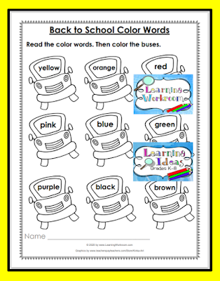 Are you starting to think about Back to School or are you getting ready for back to school? Here are a few FREE Back to School worksheets with a school bus theme to help you get started. These worksheets are all located at my website (Learning Workroom). Click HERE to get your free copies.
