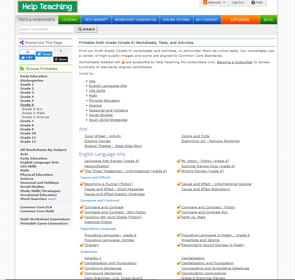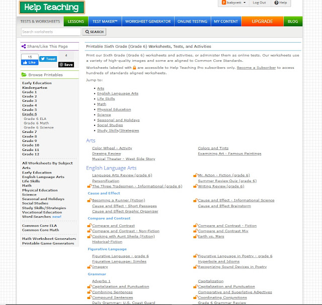HelpTeaching.com offering a large variety of worksheets on various subjects |