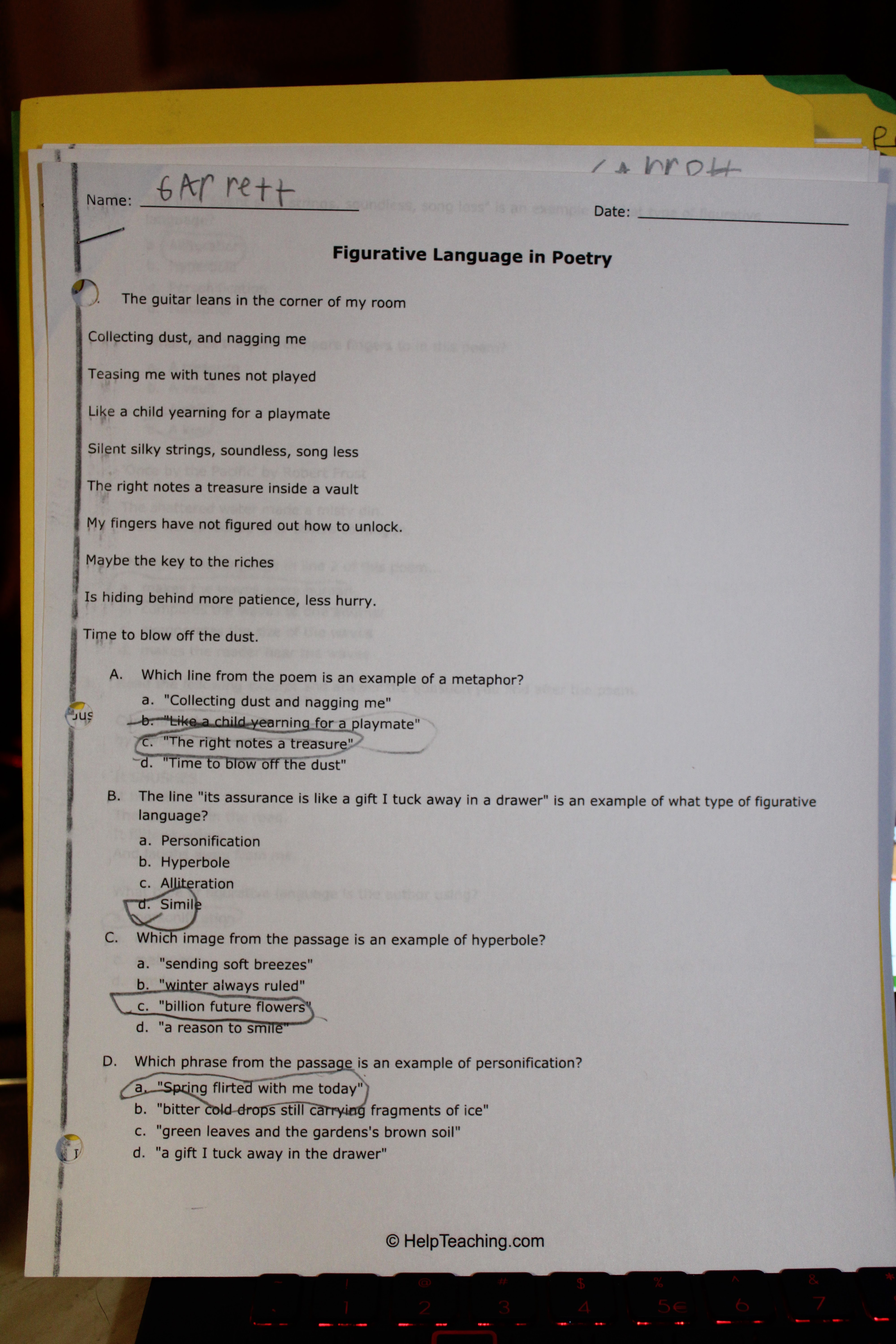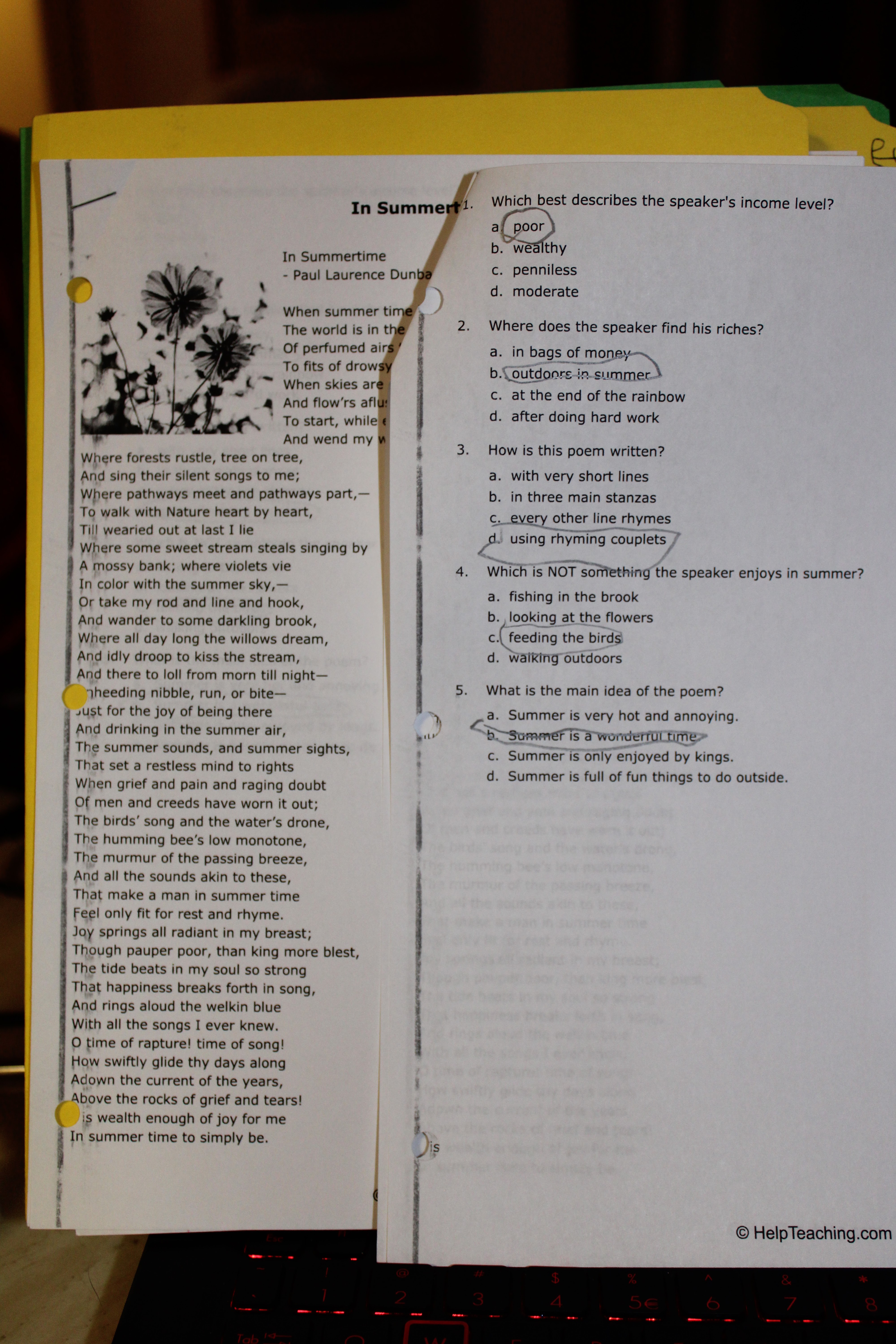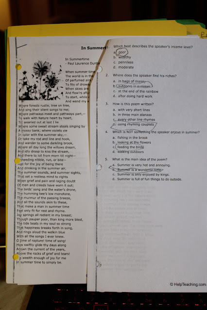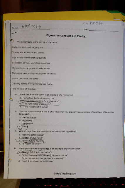 Sometimes we were able to find worksheets that fall into what we are currently studying with our lessons. I picked this worksheet as well as a worksheet "Summertime Poetry" because they both focused on figurative language, something we were already talking about in our studies.
