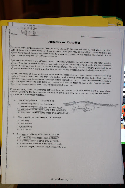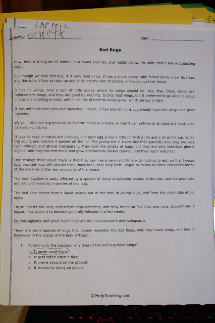I really appreciated the Reading Comprehension sheets. This is something Garrett has to really work on, and these sheets allow me to get him to read a few paragraphs and then answer the questions. If he cannot answer the question, I simply get him to skim the material to find the answer.