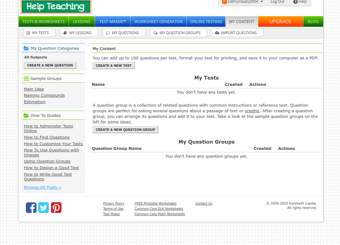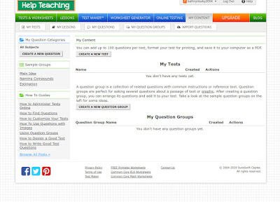 You can create a test by naming it and adding your own questions. You can find questions in HelpTeaching.com's library to use with or without your own questions. Or you can create a quick test by specifying a keyword, grade level and number of questions. And if you get lost or confused, there are lots of tutorials to help you along the way. This site really does make test making easy!