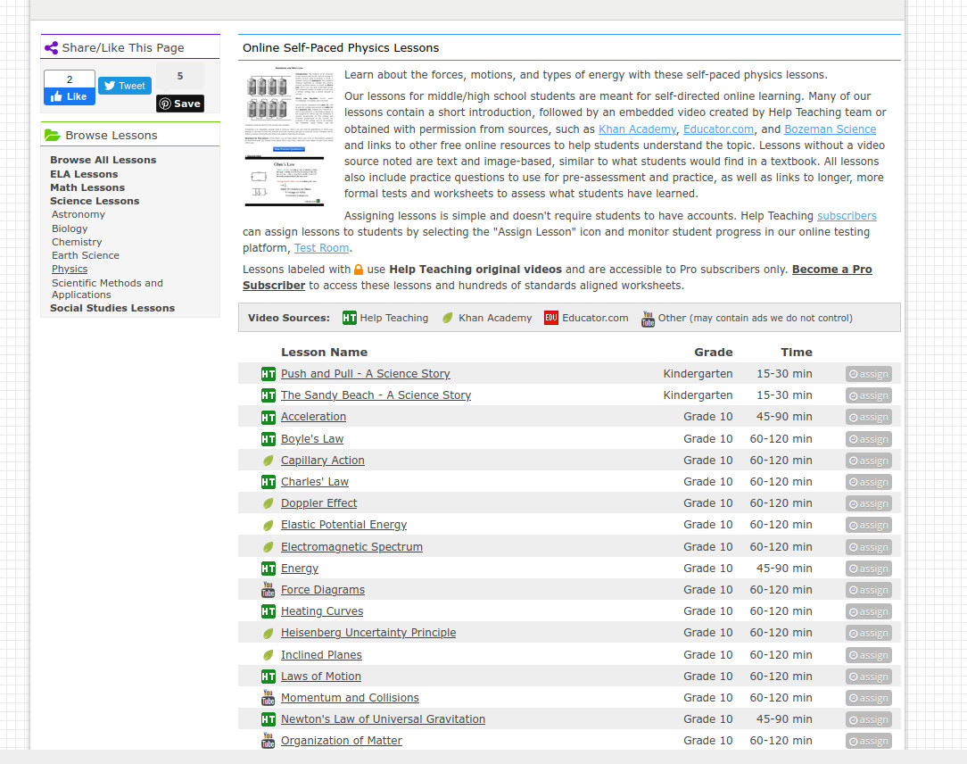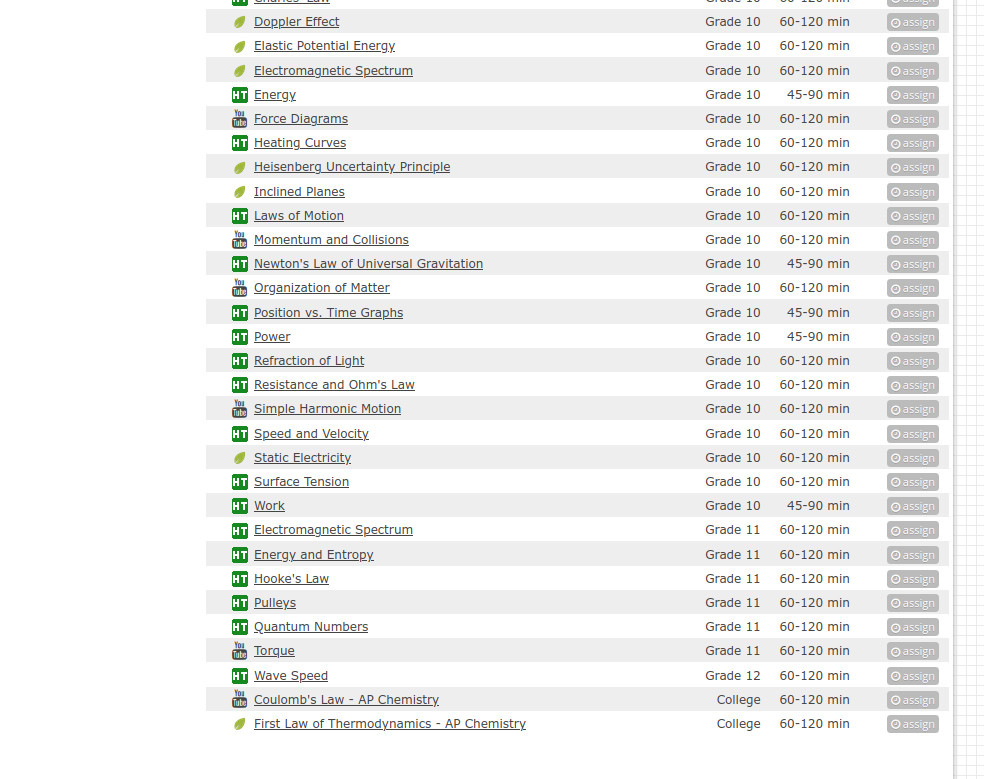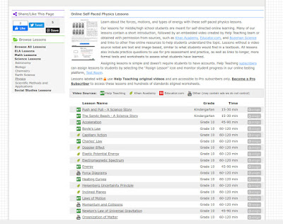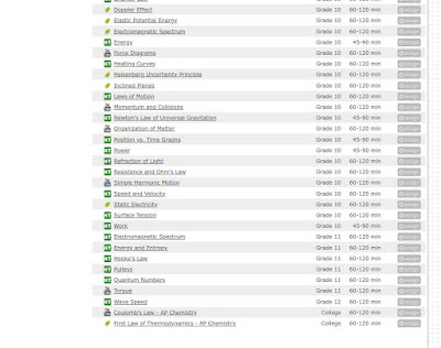 A will be taking Physics next year so I wanted to browse through the Physics lessons and see what was available. There are a few lesson appropriate for K, numerous lessons for 10th and 11th grade and a few for 12th and college).