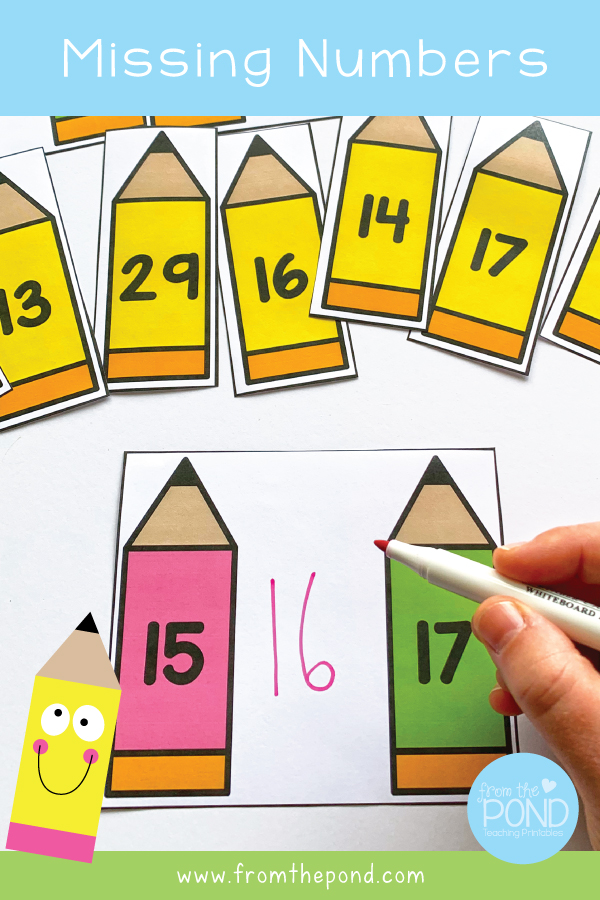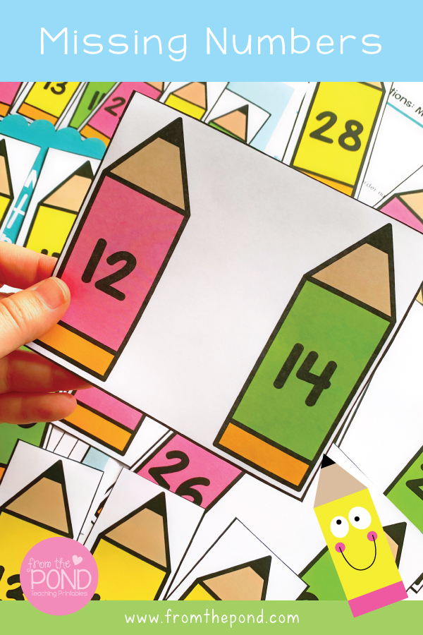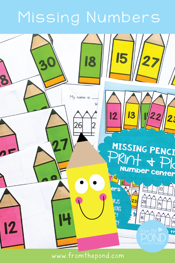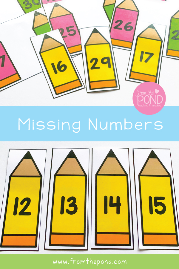 Our Missing Pencils printable math center can help students use and develop these skills in an engaging way! They will find missing numbers in small 3 number sequences between 11 and 30.