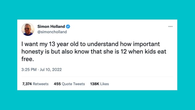 I want my 13 year old to understand how important honesty is but also know that she is 12 when kids eat free.