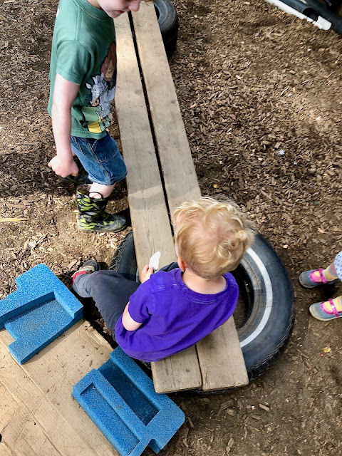 A three-year-old described an accidental lever she had made on the playground in the form of a chant: "Push down, go up, push down, go up, push down . . ."