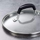 High heat performance oven safe to 400f and suitable for all cooktops except induction Sturdy stainless steel handle and straining lid features a sturdy dualriveted stainless steel handle and shatterresistant glass lid with builtin strainer