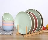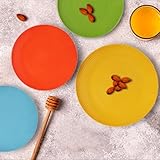 Package 4 x plates green yellow pink blue Size 78 inch Weight 37 once Wheat straw material made of wheat straw fiber starch and foodgrade pp material Bpa free good choice for your family Perfect plates for snack salad noodle pastarial a strong and durable product which can last years