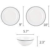 Aesthetic and functionalthe modern embossed design tastefully layers together and makes a nice addition to existing dinnerware pieces table linen and surrounding decor This dinnerware set is perfect for both everyday use and special occasions Safe materialthis american conventional dinnerware set is made of melamine a durable material that is 100 bpa free as well as top rack dishwasher safe do not microwave