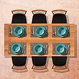 Earth’s Dreams - Entertain responsibly with reusable bamboo dinnerware by earths dreams Serve all your favorite foods and beverages with these eyecatching and completely washable wooden plates bowls and cups Perfect size for all meal 17 pieces include 4 each of our 10 dinner plates 8 salad dessert plates 45 bowls and 475ml cups You also will receive our complimentary 35 square saucer that is ideal for presenting condiments and toppings to the table Temperatureresistant and rigid bamboo dinnerware is ideal for serving both hot and cold foods Enjoy courses of crisp cool salads followed by pipinghot soup and juicy prime rib with total confidence
