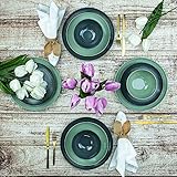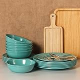 TP Dinnerware Sets Service for 6, Melamine Dinner Plates and Bowls Set, 18-Piece Dishes Set, Teal