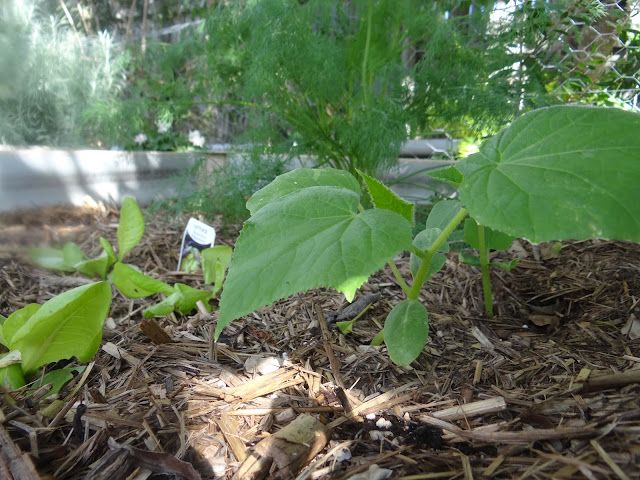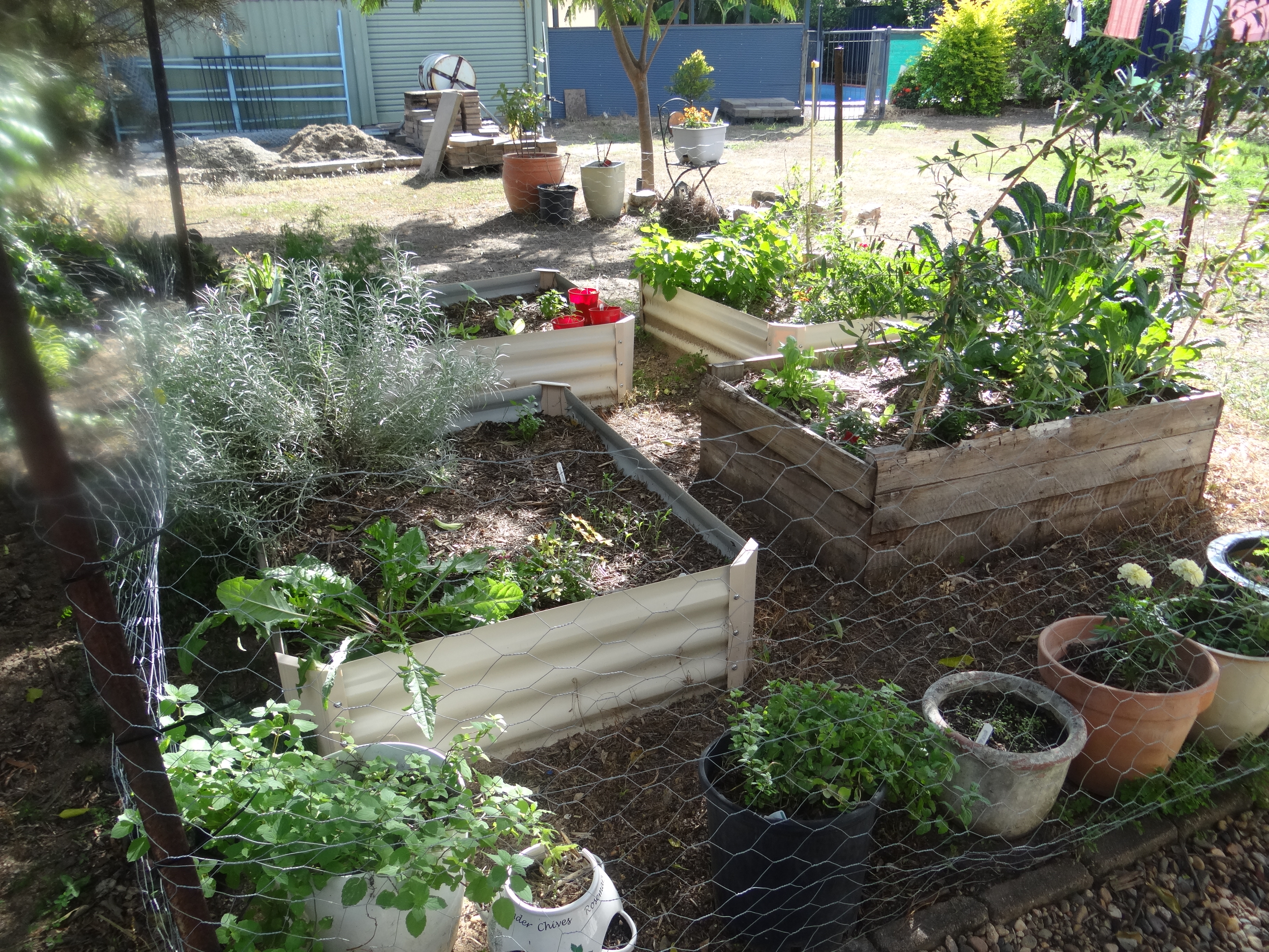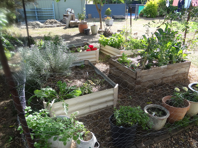 ...as well as lettuce, cucumbers, my sprouted sugar snap peas and pumpkin plants, chilli and roses in raised garden beds and large pots around the yard.