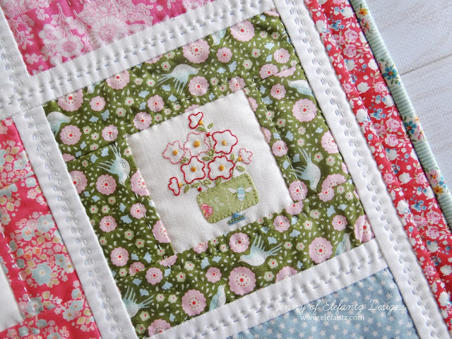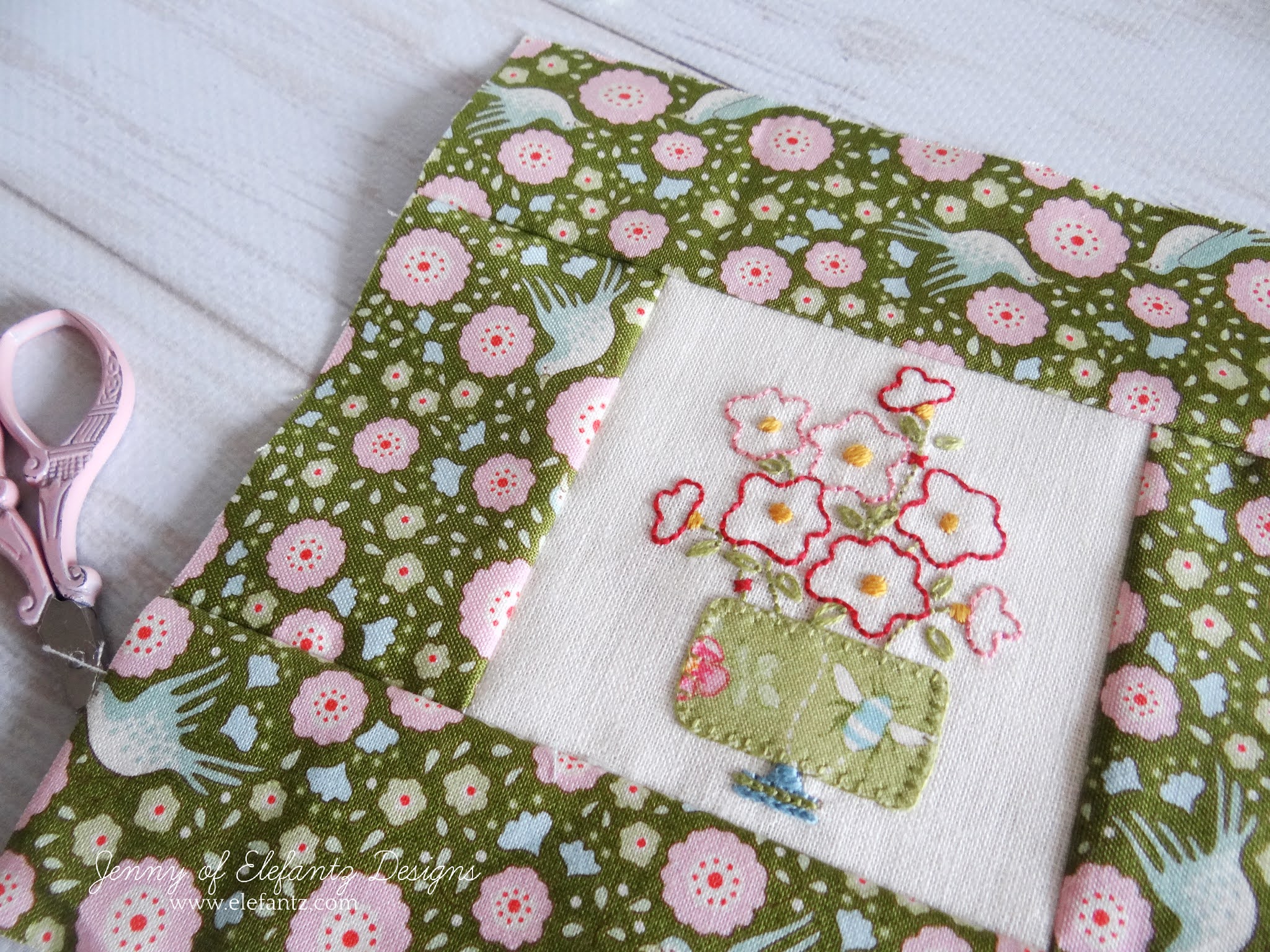 This block's little fussy cut applique vase is a bee, perfect for a bowl of posies, right?!