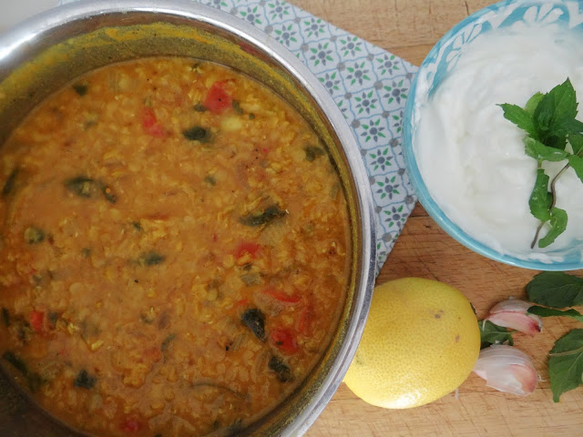For tonight I have a pot of spicy dhal which will be served on brown rice and topped with a dollop of yoghurt raita.