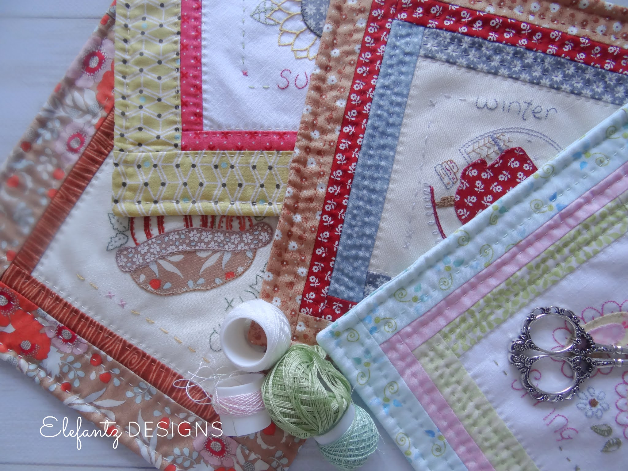 I do put my feet up for a bit in the afternoon with a nice cuppa, piece of cake or muffin, and some stitching. I've especially enjoyed completing a set of four new seasonal mini-quilts which I hope to write patterns for this week.