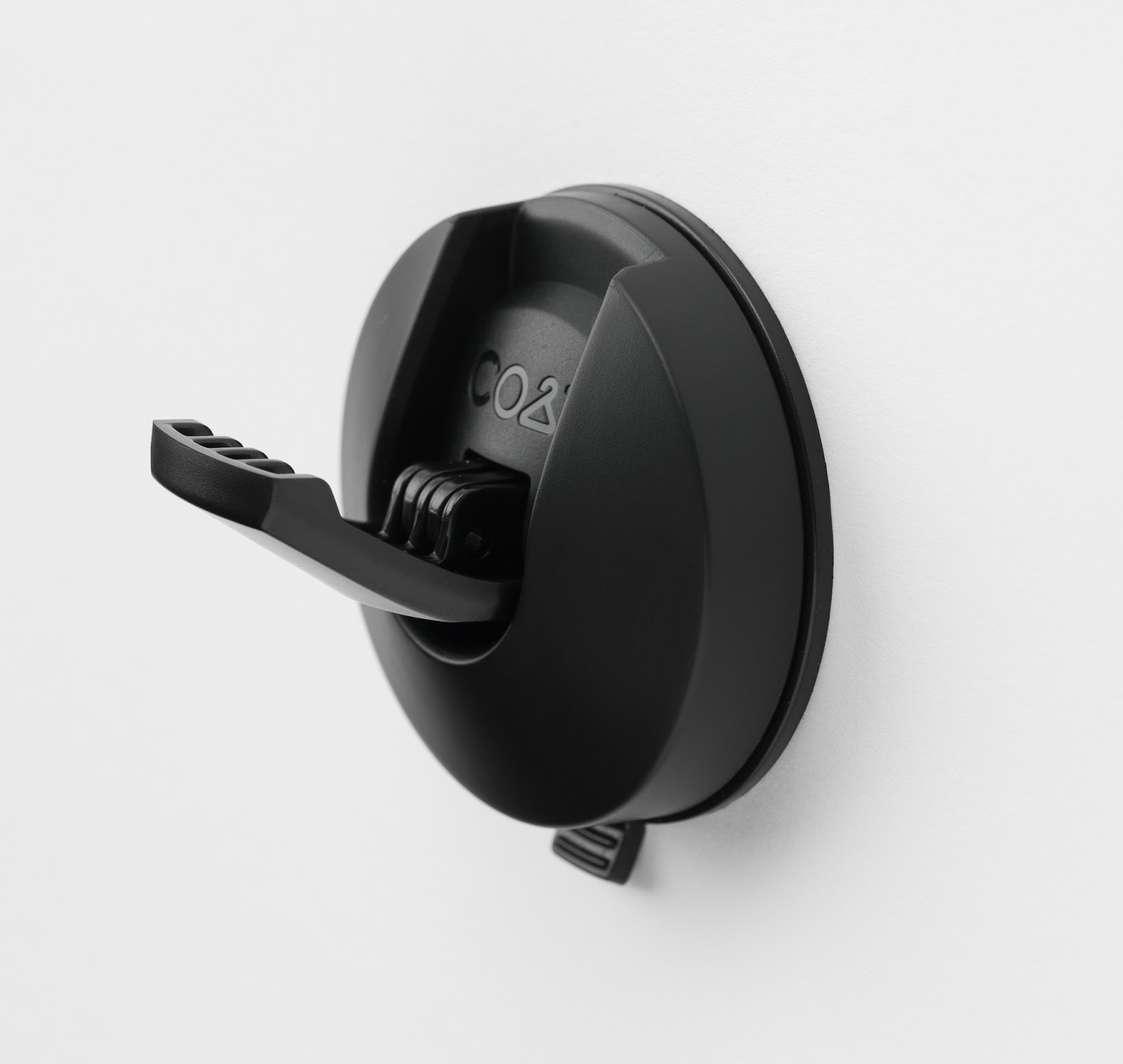COAT uses suction technology to stick to smooth surfaces such as glass, tile, stone, metals and tabletops (although is less effective on painted walls).